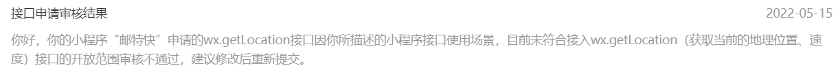 这样的审核结果,并不是因为你提交的场景说明不够清晰,而是已经够清晰了,但是审核员认为这种场景不允许使用wx.getLocation,所以,删除所有wx.getLocation代码再提交审核,完事。