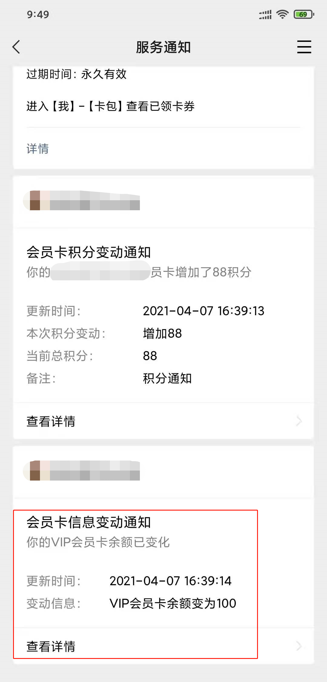 会员卡余额变动,服务通知里不会推送会员卡信息变动通知了?