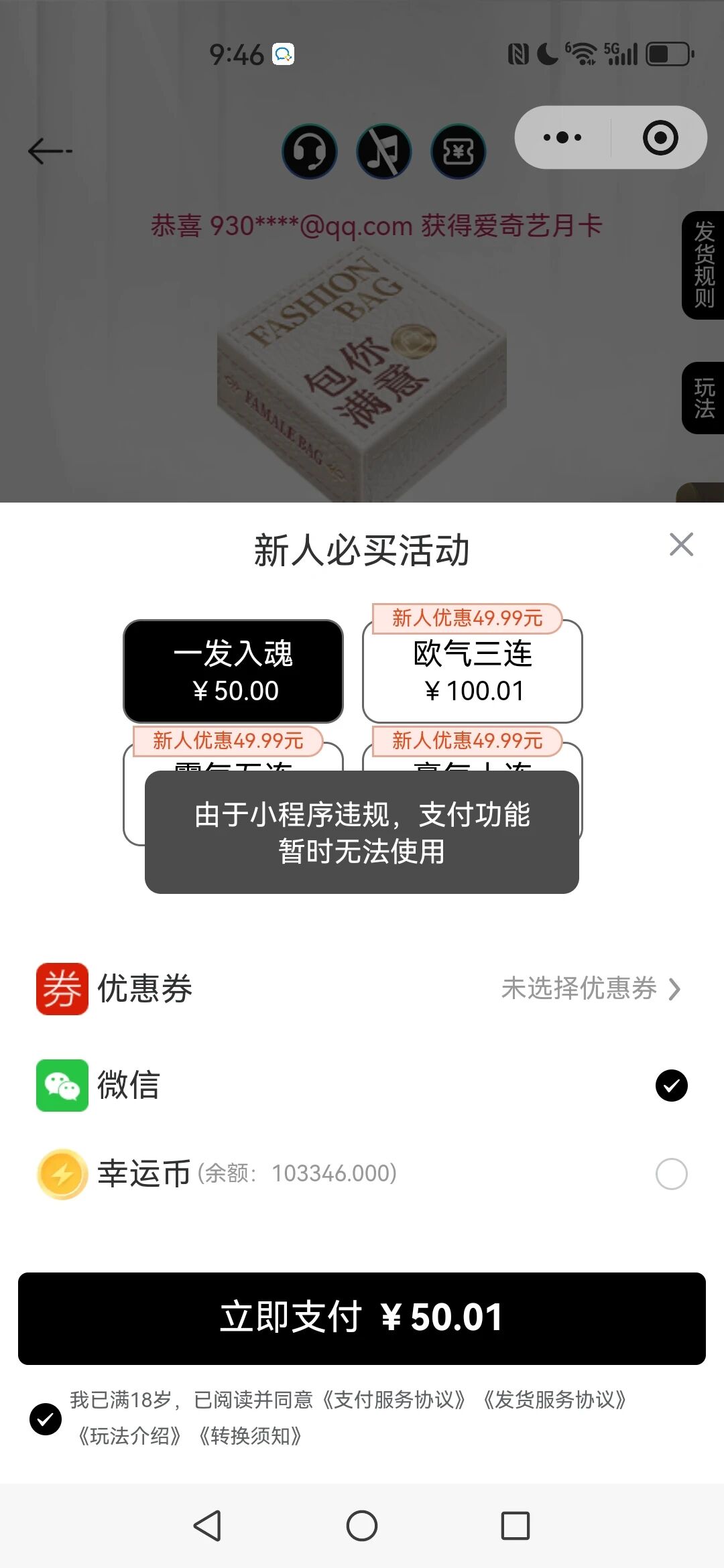 我小程序上线即违规?直接禁止我支付?你要觉得我的小程序有问题你直接可以拒绝通过审核哦.你关我支付我怎么盈利?