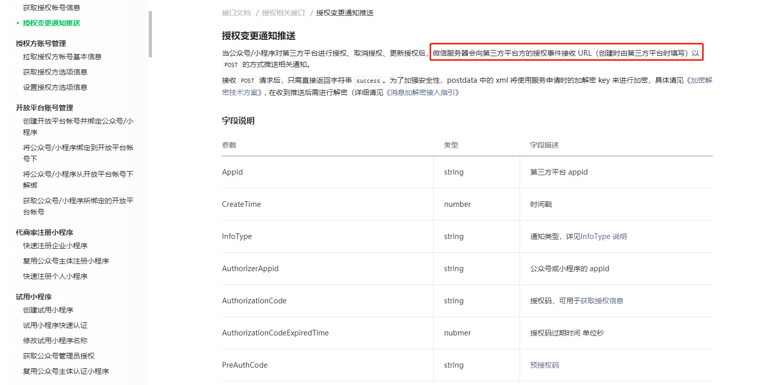 你好,请查看下第三方平台的授权事件接收 URL的消息,