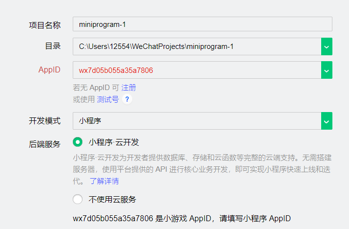 在开发小程序的过程中,不小心点击了版本管理,初始化Git之后,小程序就变成了小游戏,并且小程序的id也被提示为小游戏id.