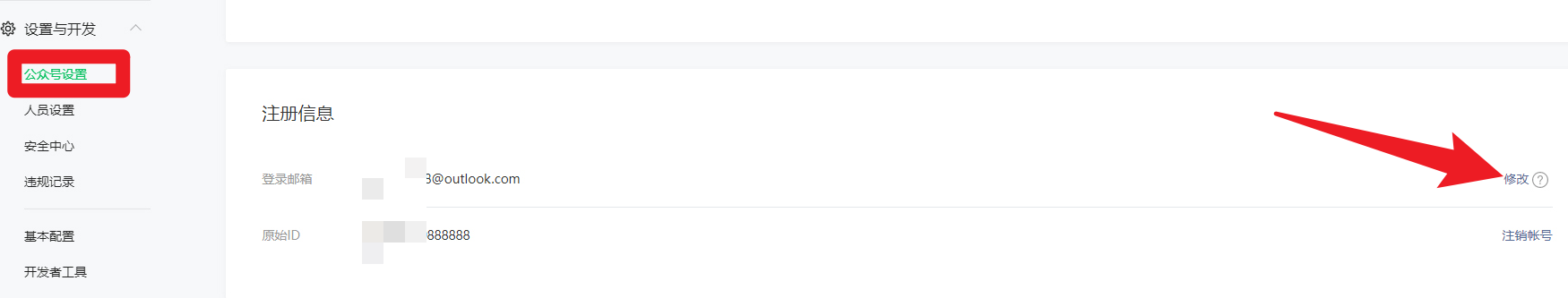 公众号设置中可以修改邮箱。