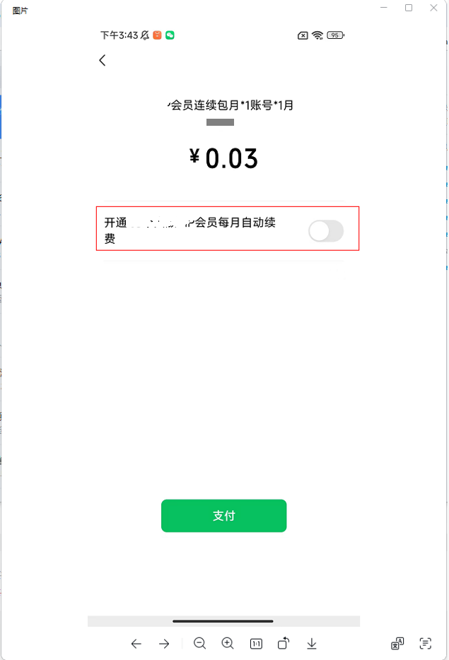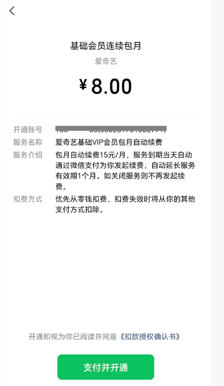 用户购买“连续包月”产品,APP委托代扣的 模板类型是“自动续费”,用户首次支付页面上显示需要用户“开启每月自动续费”?怎么配置才能不需要用户手动开启“自动续费”(图1红框部分)?希望向腾讯视频(图2)或爱奇艺APP(图3)的 连续包月 一样。