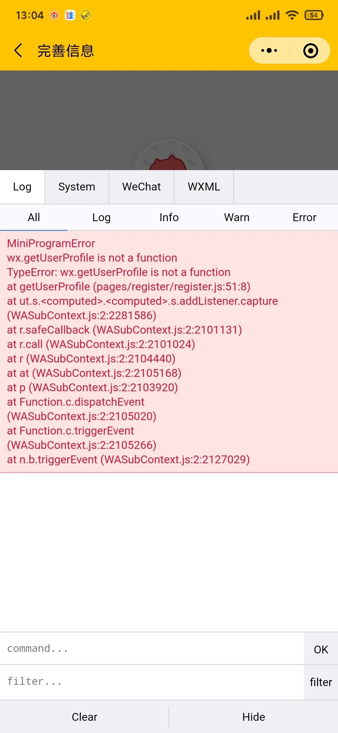 请使用了wx.getUserInfo接口或<button open-type="getUserInfo"/>的开发者尽快适配。开发者工具1.05.2103022版本开始支持getUserProfile接口调试,开发者可下载该版本进行改造。
