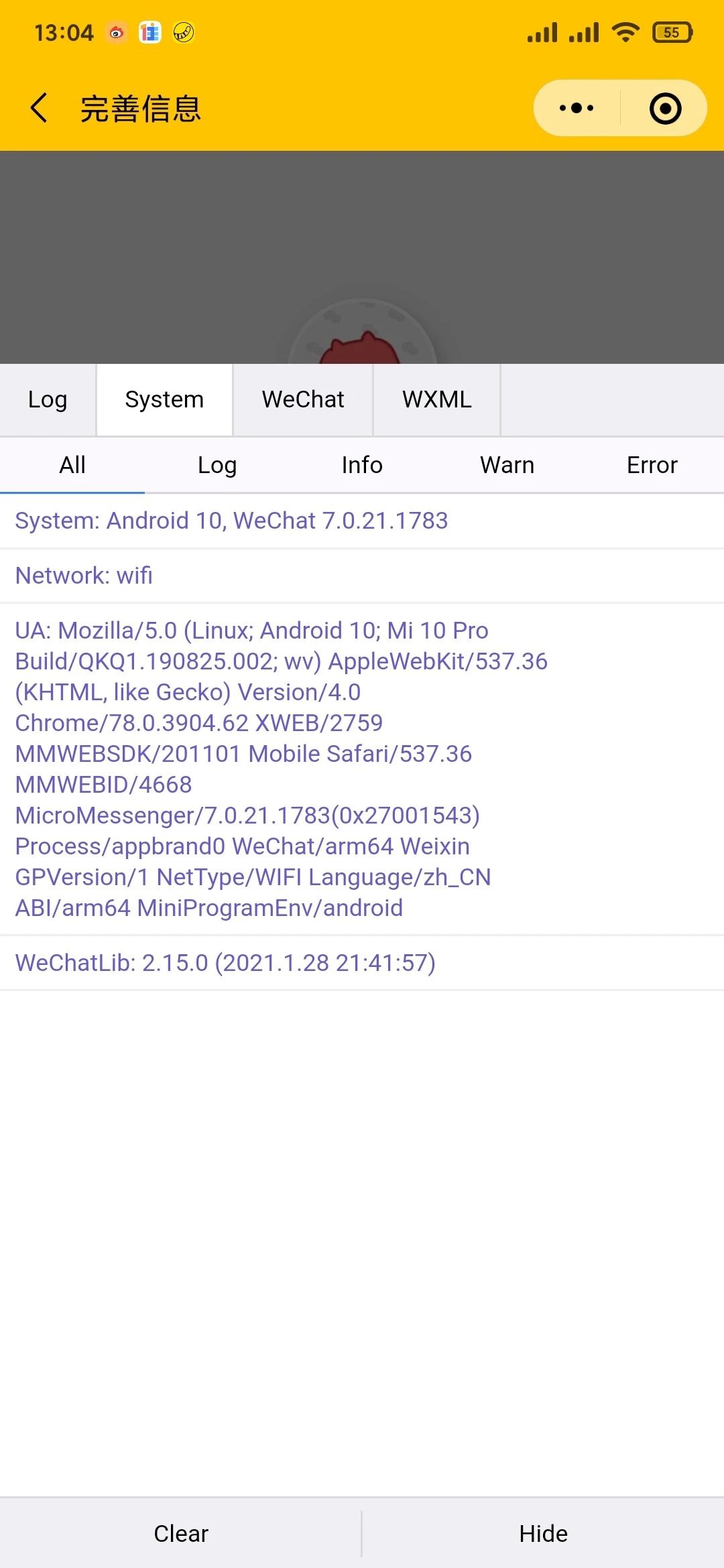 - 新增getUserProfile接口(基础库2.10.4版本开始支持),可获取用户头像、昵称、性别及地区信息,开发者每次通过该接口获取用户个人信息均需用户确认。具体接口文档:《getUserProfile接口文档》