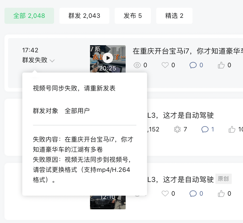 2. 检查视频文件格式是否符合公众号上传要求,建议使用mp4格式,并且视频大小不能超过2GB。
