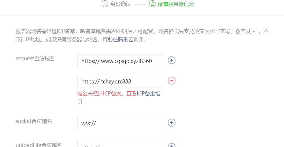 2.新增其他域名,情况正常,因为域名没备案。如下图: