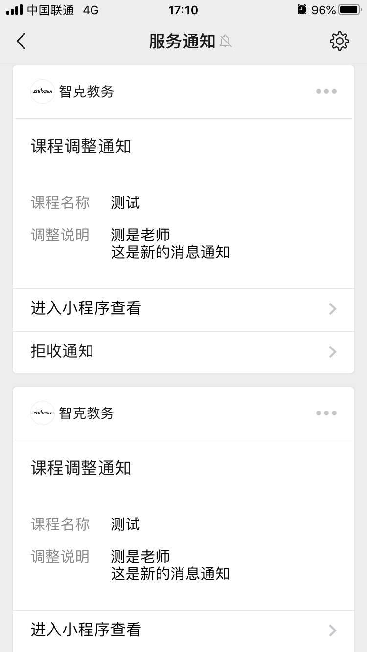 后台订阅消息模板有两个不一样的formid,但是发送一次,会出现如图 重复现象