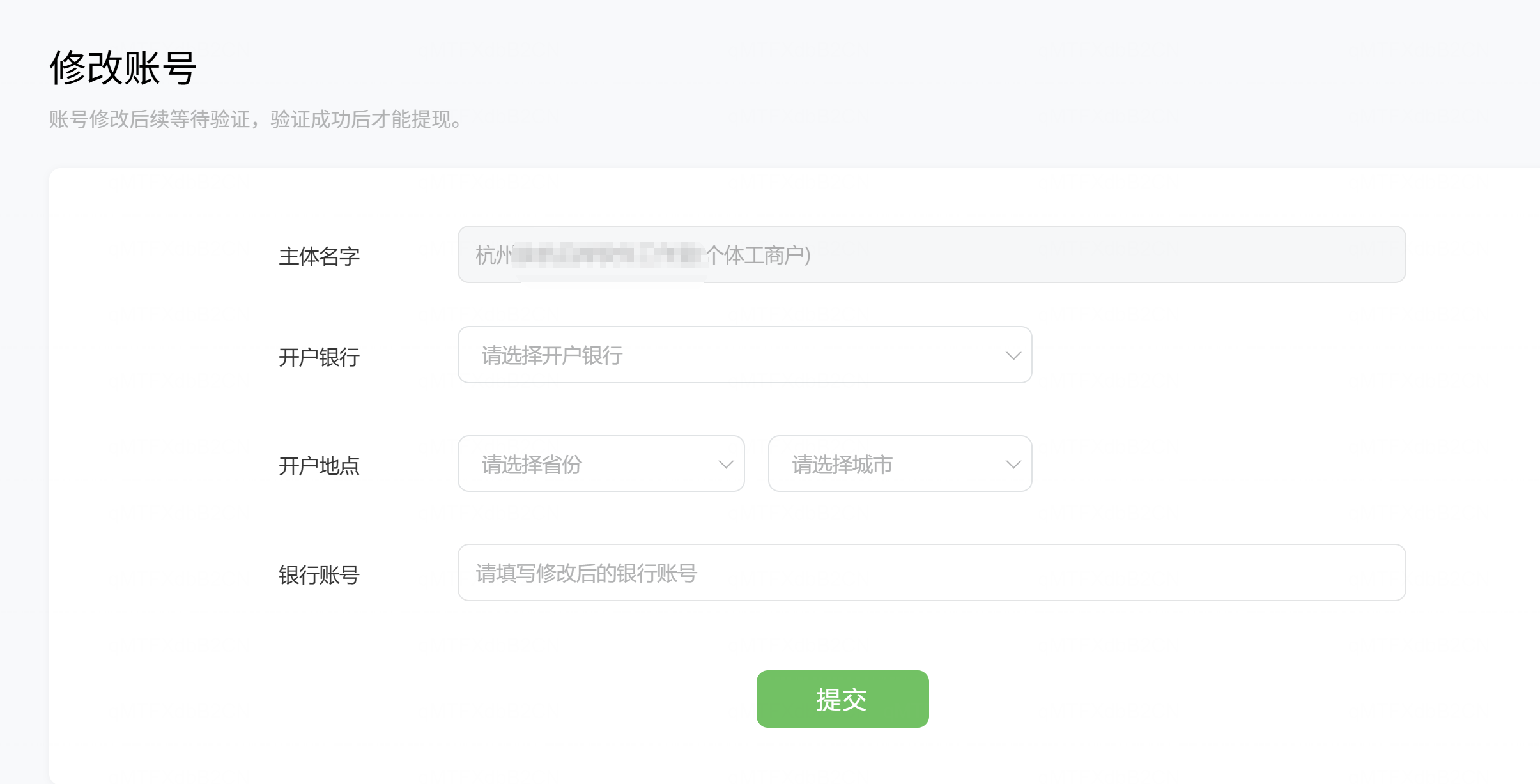 个体户-虚拟支付-修改银行账户信息 修改不了为 私人账户?