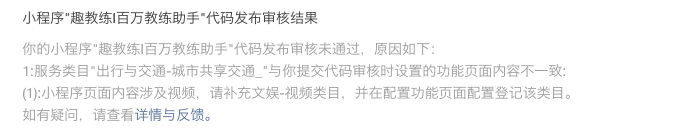 您好,我们提交的小程序因为内容中含有视频审核不通过,需要补充文娱类目,但是我们的小程序属于教育类,为驾校教练提供教学、招生相关的视频的,不含UGC内容、也不属于娱乐性质。所以说应该是不需要添加文娱类型的,麻烦审核大大帮我们重新审核下。