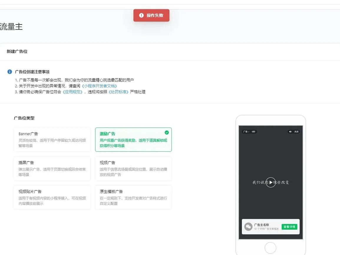 小程序流量主管理功能已授权于服务商,暂不支持本操作;如需操作,请联系服务商。