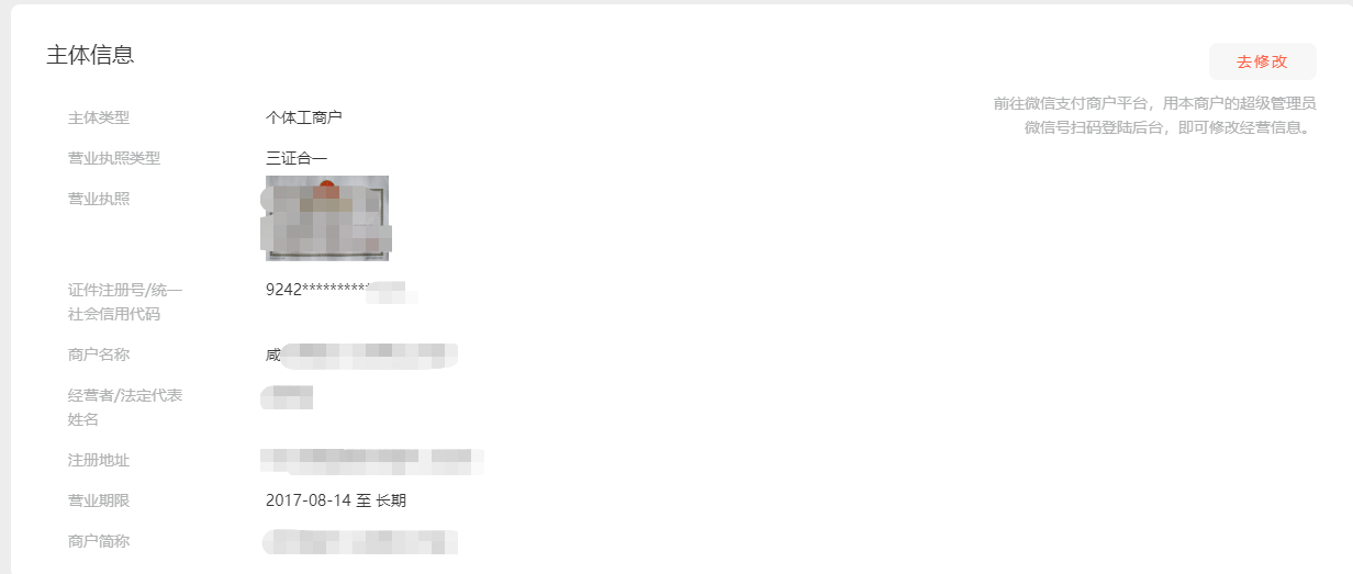 营业执照更名后,根据小商店后台修改提示,进入微信支付商户平台修改主体信息,审核通过后小商店后台信息未更新,还是显示以前的主体信息,如何解?