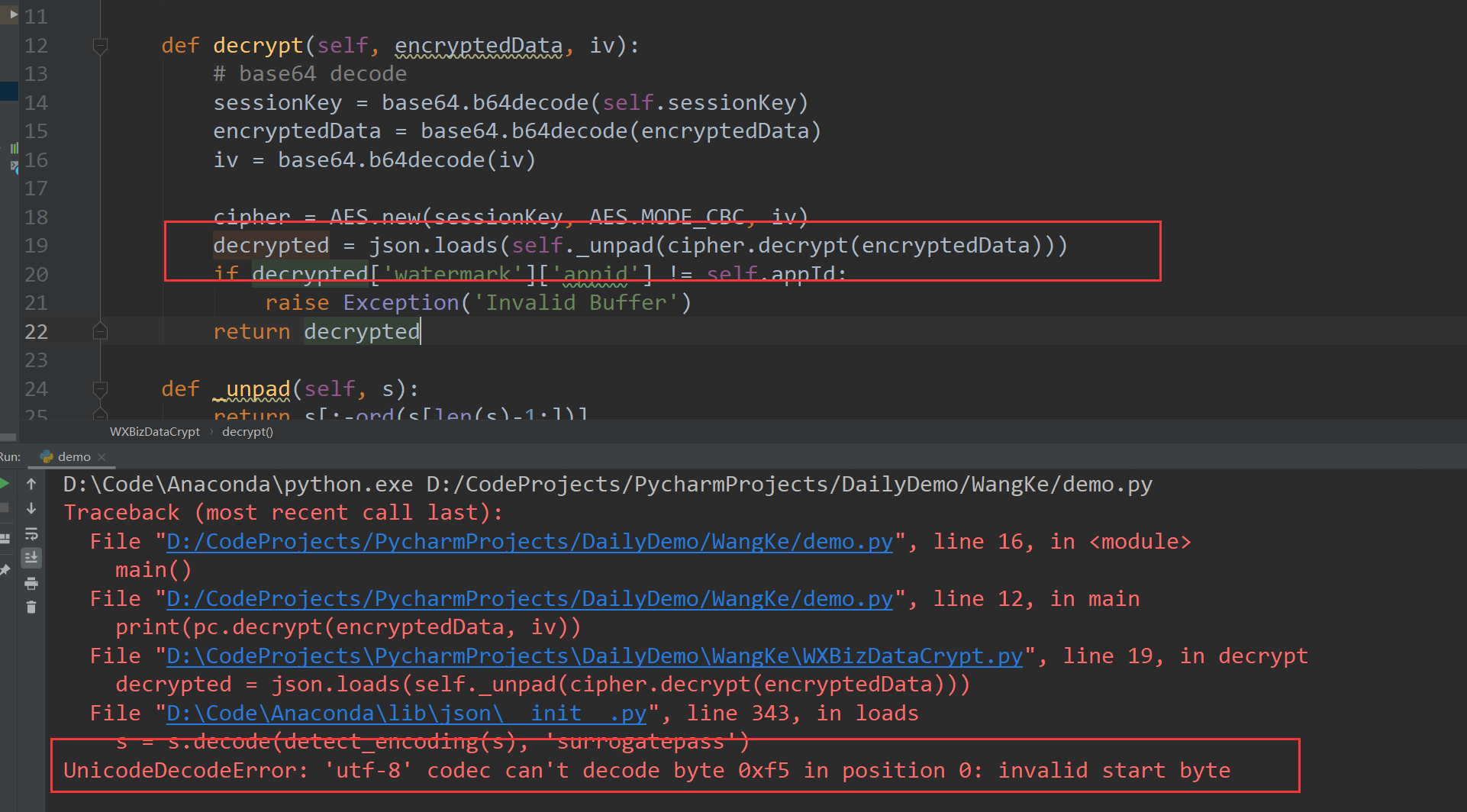 用官方的例子结果发现解码不行,有大佬知道吗,或是成功解决问题的其他语言也可以