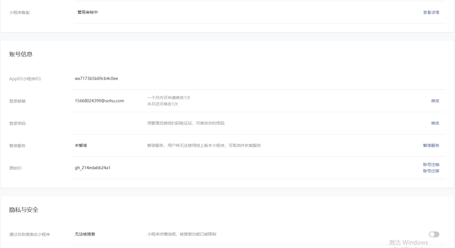 我司新注册微信小程序备案昨天已经通过工信部备案,并收到备案编号短信通过,微信小程序后台一直显示管局审核中,另外新注册小程序为什么提示被限制搜索,涉嫌违规????站内信也没有提示呀。新注册账号何来的违规??请官方核实,谢谢!