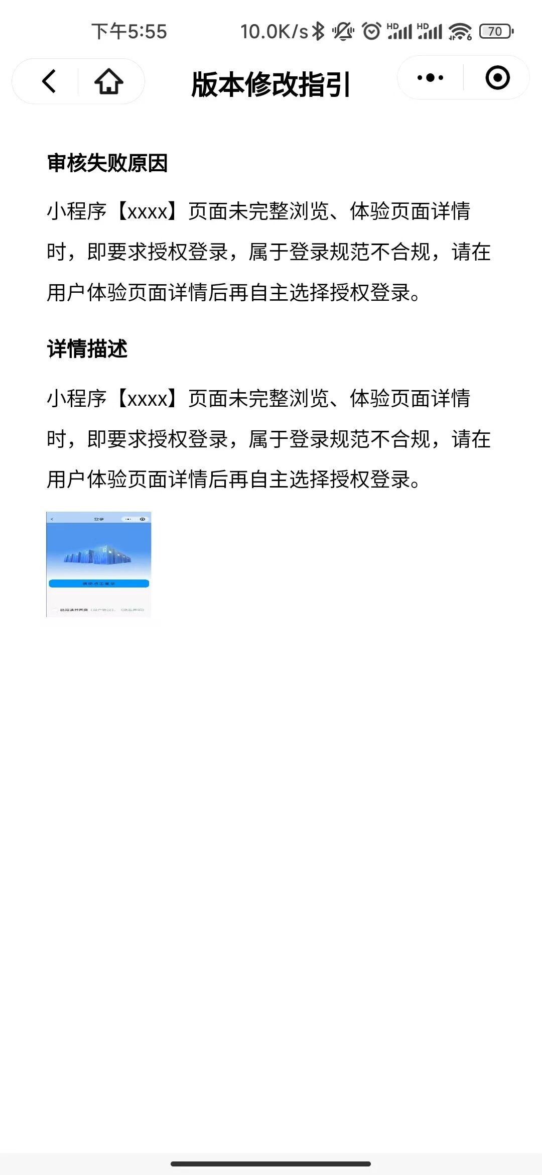 你好,经核实,小程序【专家详情】【专家库】【合作项目】【领域,资讯】等公开板块页面未完整浏览、体验页面详情时,即要求授权登录,属于登录规范不合规,建议开放详情服务,在用户体验页面详情后再自主选择授权登录。