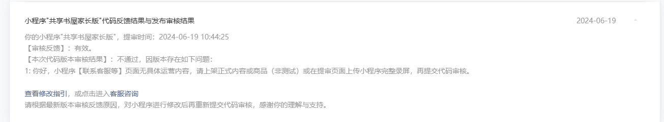 搞笑的事,今天审核不通过,不改动,明天审核就过了,审核感觉就没有很明确的规范,每个审核人员都是看心情审核的,及其不专业,而且小程序提交审核居然还审核到了很久都不用的页面,只是代码想保留但是并不做开放给用户,主要运营内容的页面就不做审核。