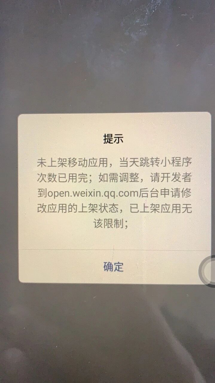 应用上线了两个月,每天跳转小程序次数都超过100次,今天突然提示这个