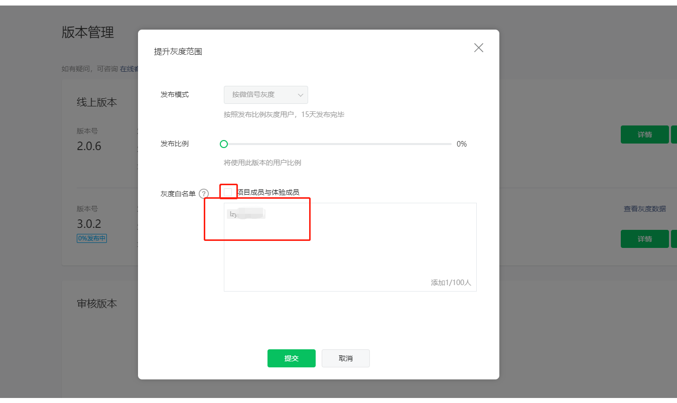 请问一下在按微信号灰度的发布模式下,将发布比例调为0%,然后白名单里面填微信号,是不是意味着就只有白名单里面的用户会走到灰度呢?
