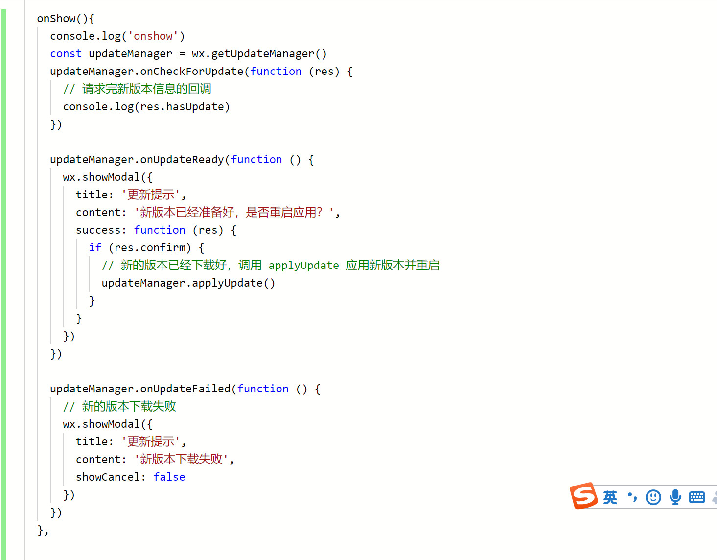 微信小程序版本更新写在onshoew事件里了,但是只有ios有版本更新提示,安卓没有,请问什么问题?