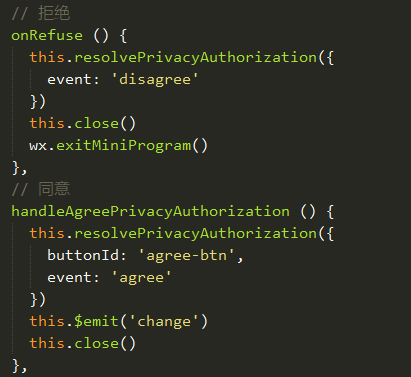 <button class="refuse" @click="onRefuse">拒绝</button>