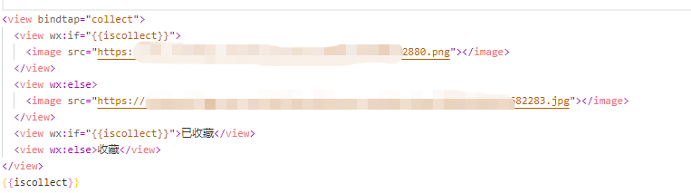 这是wxml代码块,想通过iscollect值控制显示,但无论iscollect为何,都只显示if的结果。