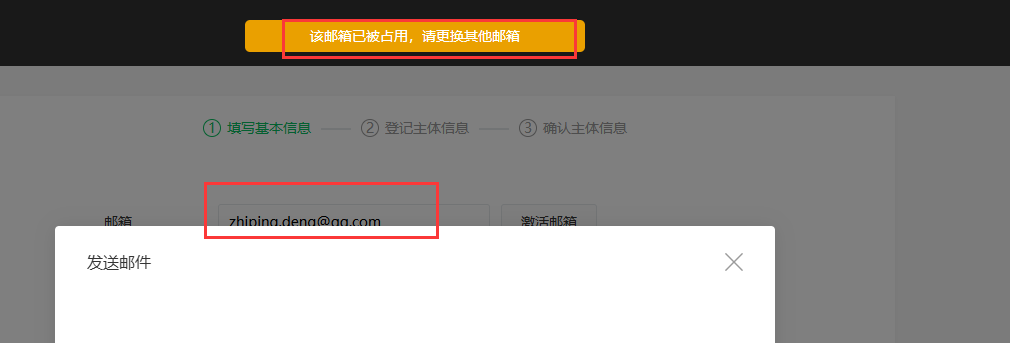 没bug。新注册一个邮箱就完事了。