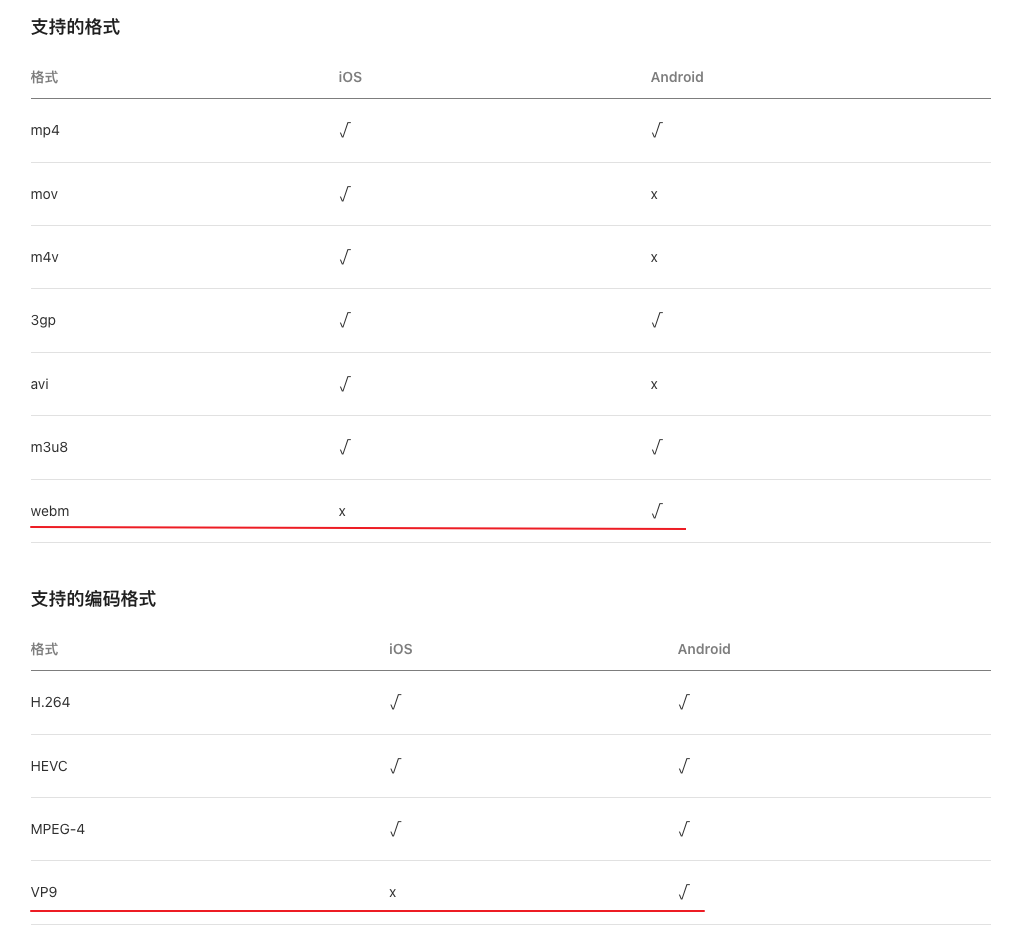 但是开发者文档中写到已支持了 webm vp9 编码格式的视频