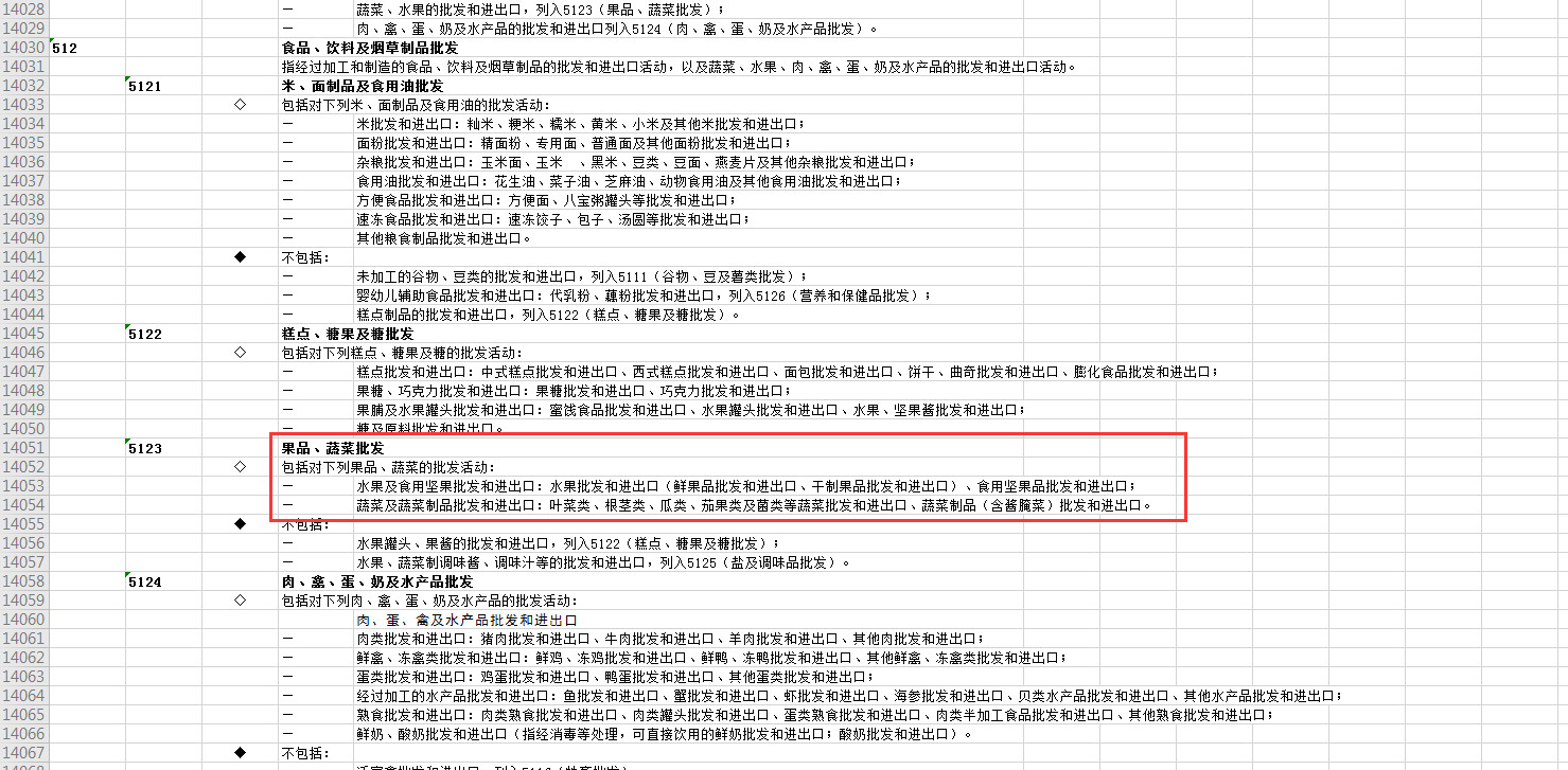 在今年2019年5月份国家统计局对于国民经济行业分类注释的修订版,水果蔬菜的批发都属于51大类的批发,是属于一般经营项目,可自主经营,不需审批 网址:http://www.stats.gov.cn/tjsj/tjbz/201905/t20190522_1666232.html,