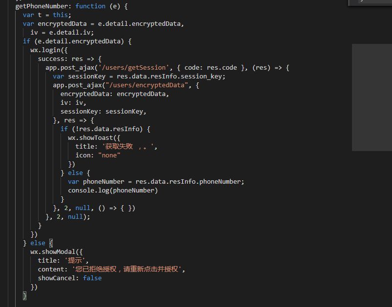 encryptedData,iv,sessionKey 都有 但是返回就会是空 第二次点击授权 才会 解析出来 手机号