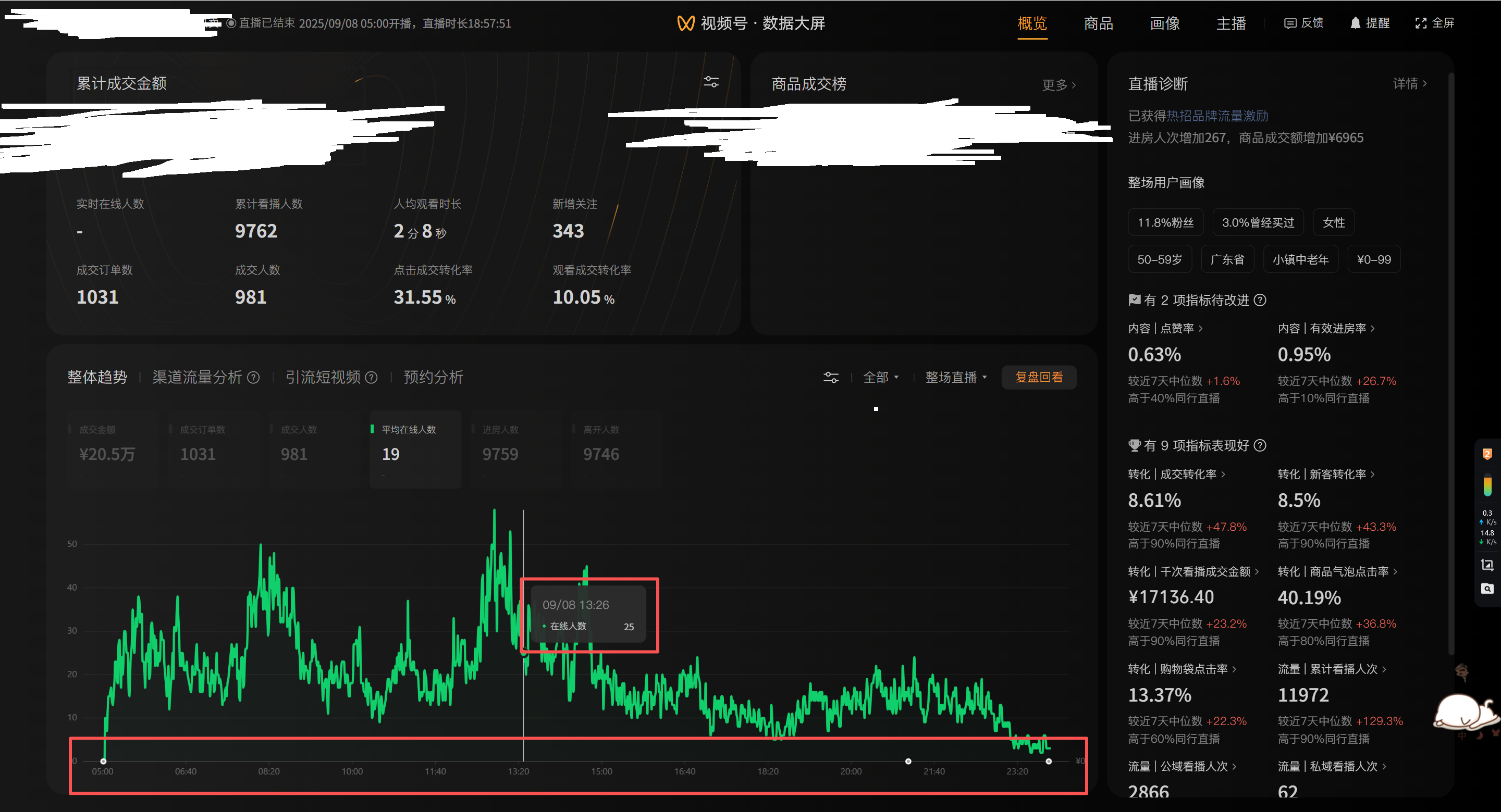 没有作用,我需要的是趋势,例如13:00的在线人数, 14:00 的在线人数