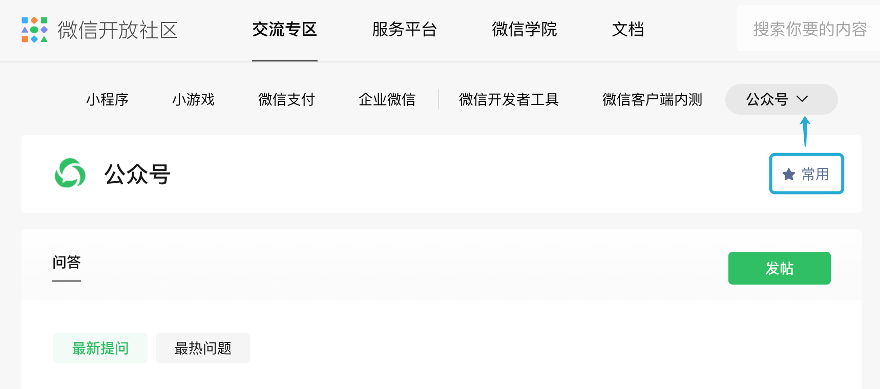 微信开放社区新增「公众号」等新交流专区版块
