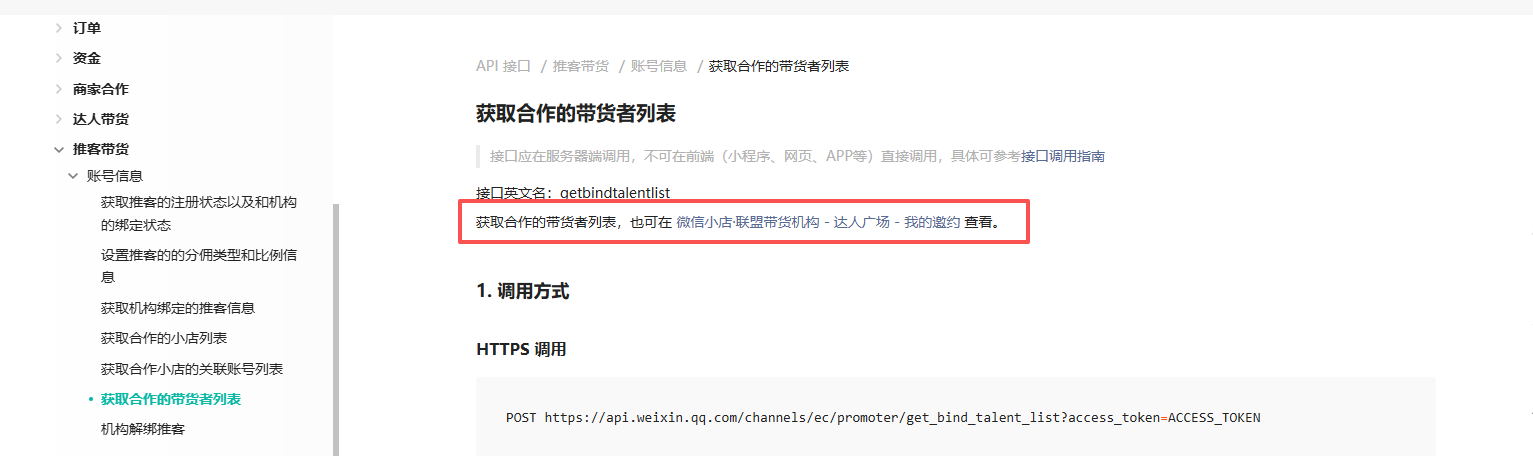 第二点:文档链接如下https://developers.weixin.qq.com/doc/store/leagueheadsupplier/api/sharer/account/api_getbindtalentlist.html