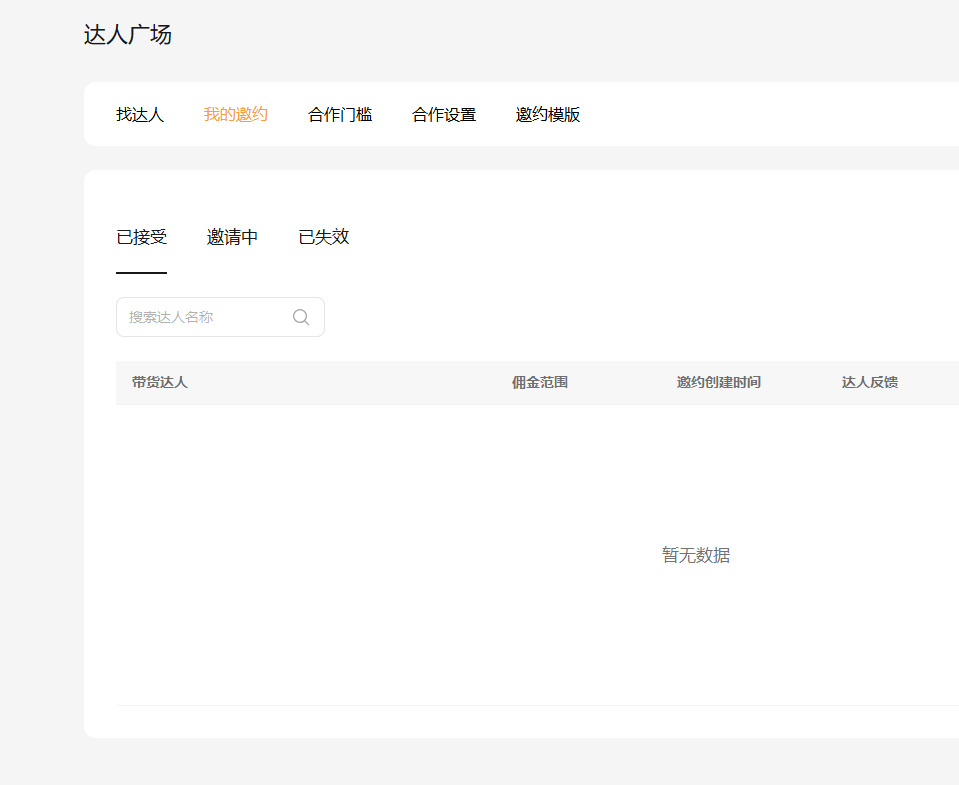 1、获取绑定的带货者,和邀约信息没有任何关系的,“接口文档中表示,上图数据,可在机构联盟中的达人广场/我的邀约中查看到”这个具体给下位置