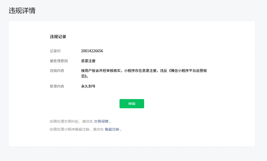 你好,经核实,申诉结果已通过站内信下发,可登录微信公众平台查看申诉结果,感谢反馈。