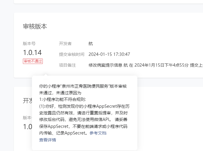 你好,经核实,建议自查代码,确保包括前端展示、小程序代码等整体均移除上述内容,再提交代码。请整改再重新提交代码审核,审核将以实际提交的小程序服务内容为准~