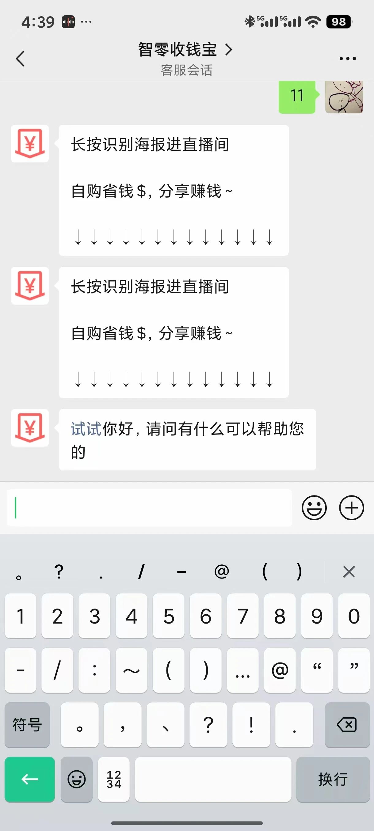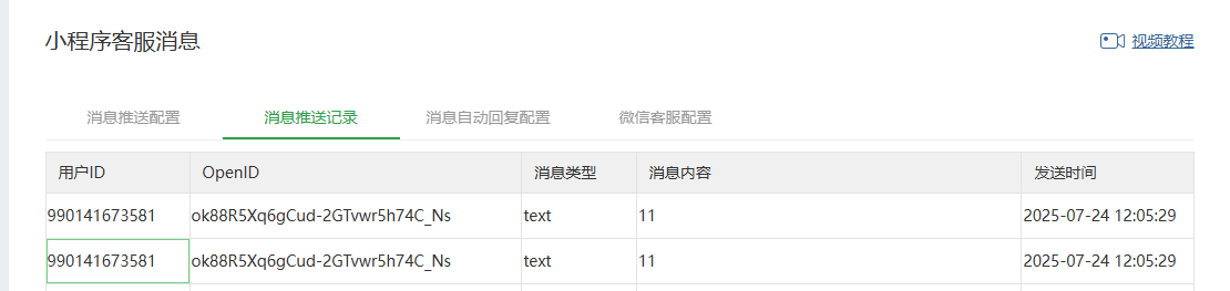过程:小程序中点客服,发送消息