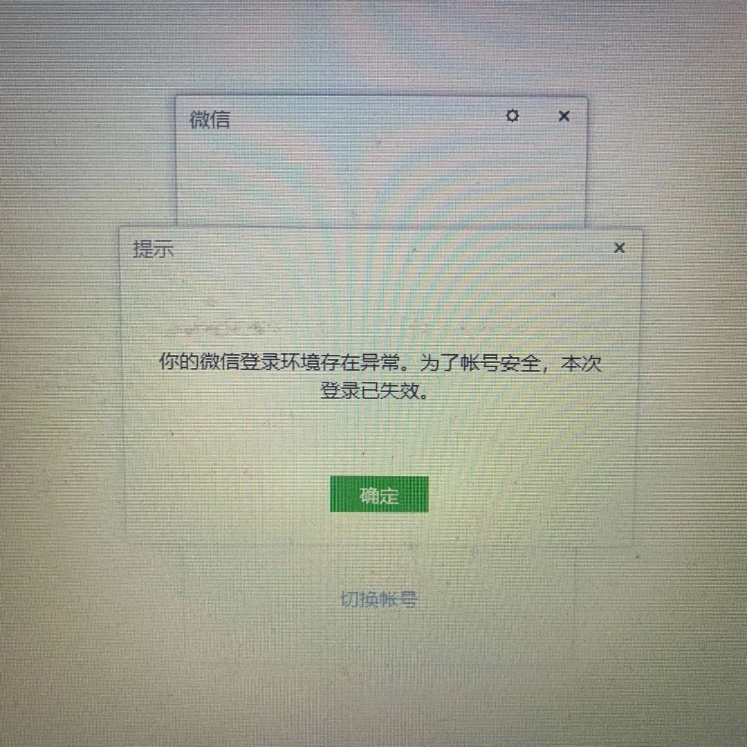 您好,我的PC微信,刚换了新电脑,已经连续好多次显示“登录环境存在异常”并被强制关闭,能否帮我看一下,感谢!我的微信号是:BTCYG8.