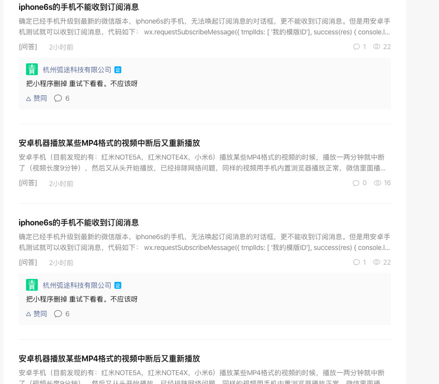 然后鼠标滚轮向下滚动,继续查看社区用户发帖,注意!留意观察右侧滚动条位置,大概到底部的时候,会加载第二页的数据,此时注意观察加载前的数据和加载后的数据,不出意外,会有重复数据(如上图)。