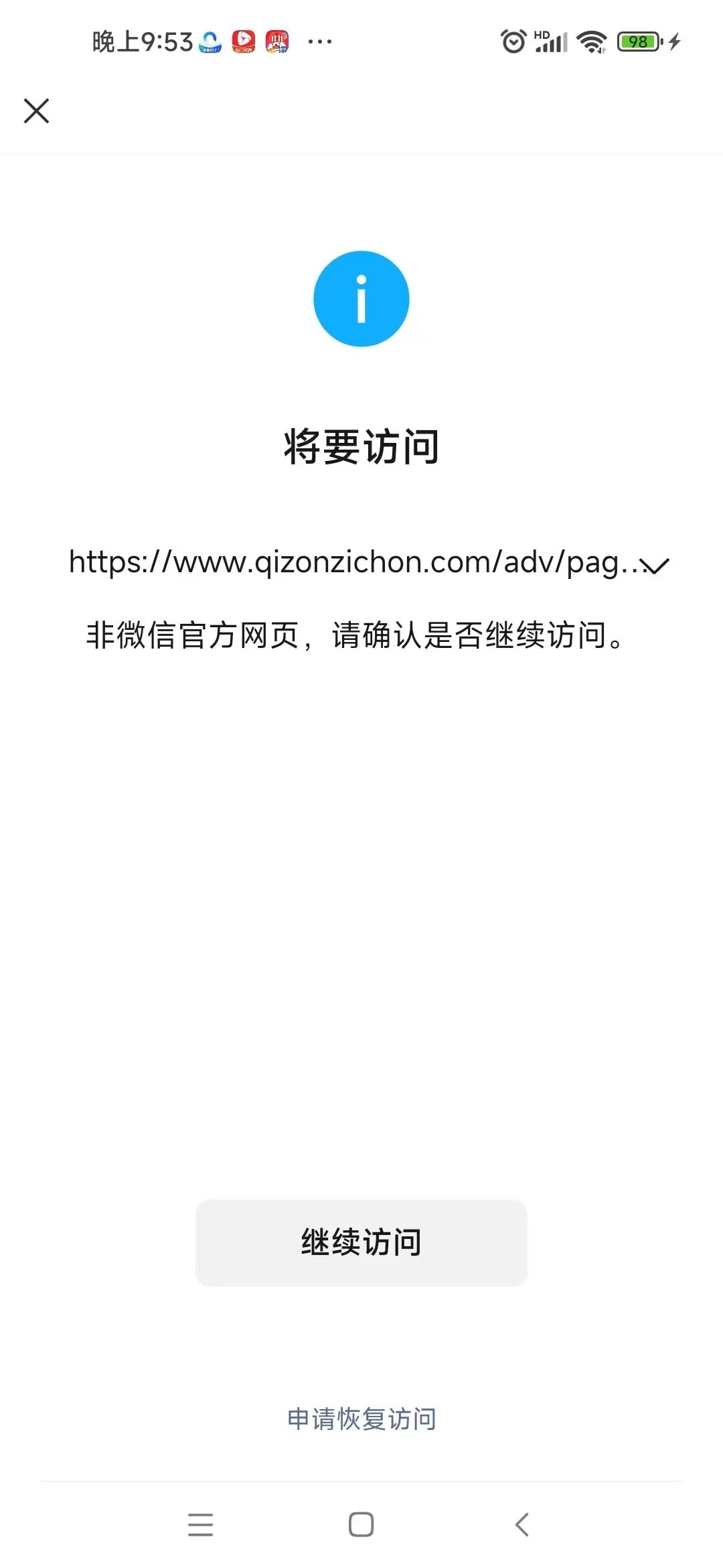 扫描普通二维码进入小程序指定页面结果弹出非微信官方网页,域名:https://user.xuanhetec.com/