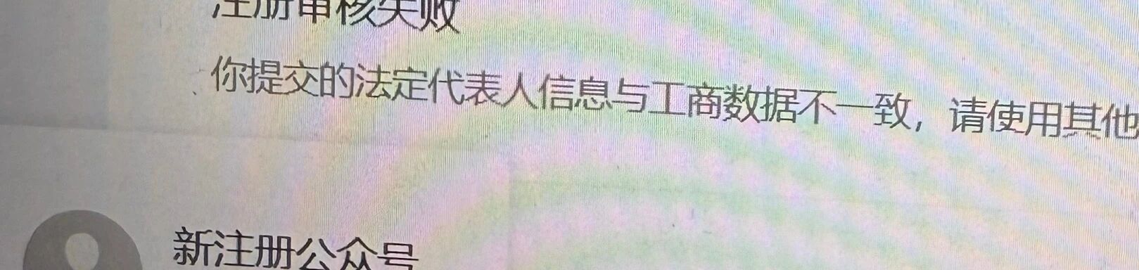 注册微信公众号出现 法定代表人信息与工商局数据不一致怎么处理