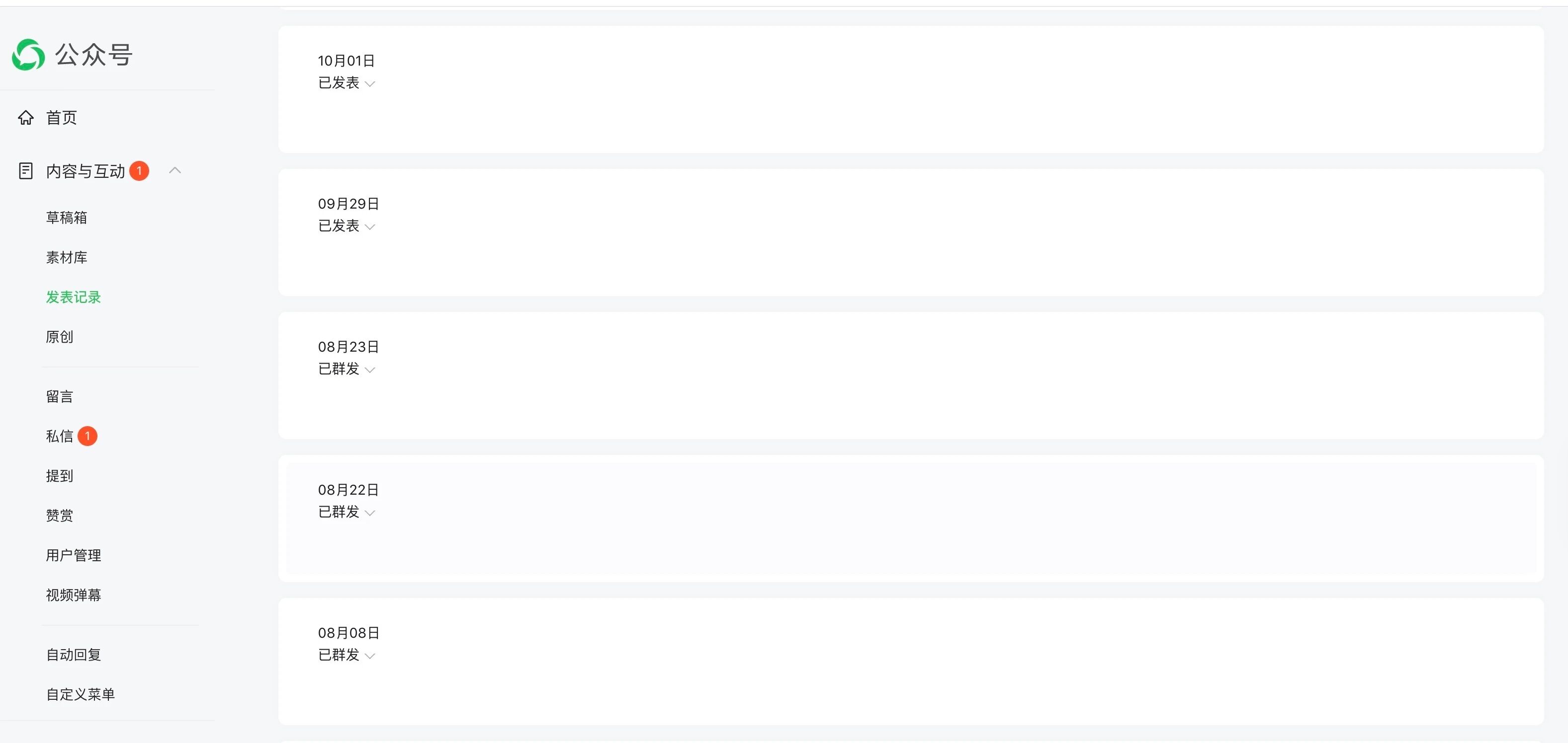 已发表文章全都消失了,只显示发表时间。手机搜索公众号也看不到历史发表成功的文章。