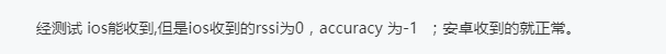 经测试 ios能收到,但是ios收到的rssi为0,accuracy 为-1 ;安卓收到的就正常。