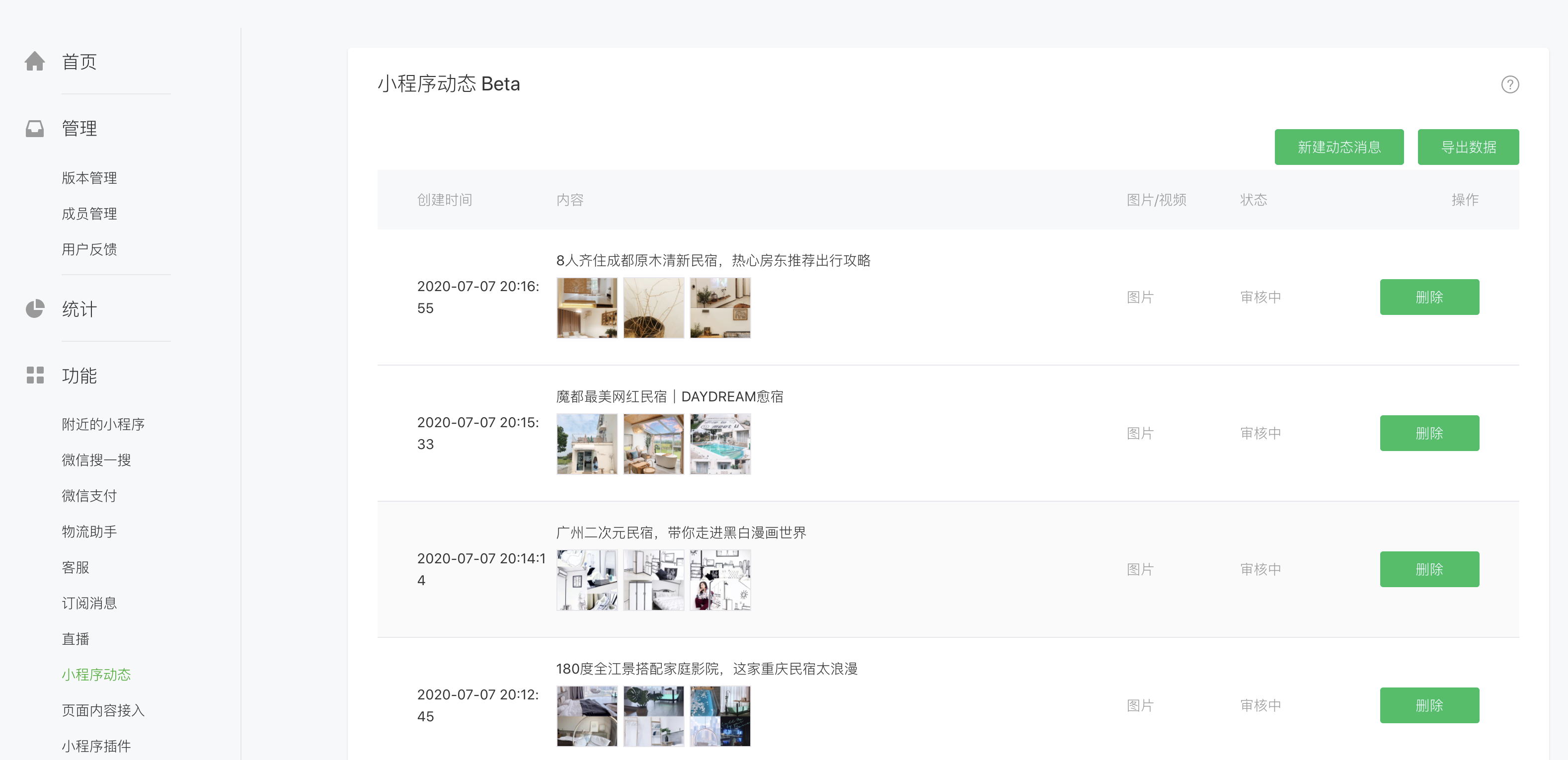 2020-07-07 20:16 我们上传了10条小程序动态,到今天为止一直都是审核中的状态,请问这个功能是否还在支持?什么时候能够审核完?