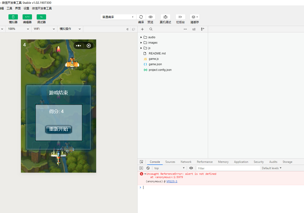 发现几乎所有的项目都有这个问题(官方示例也有(微信飞机大战)),在空白处长按后抬起时报错