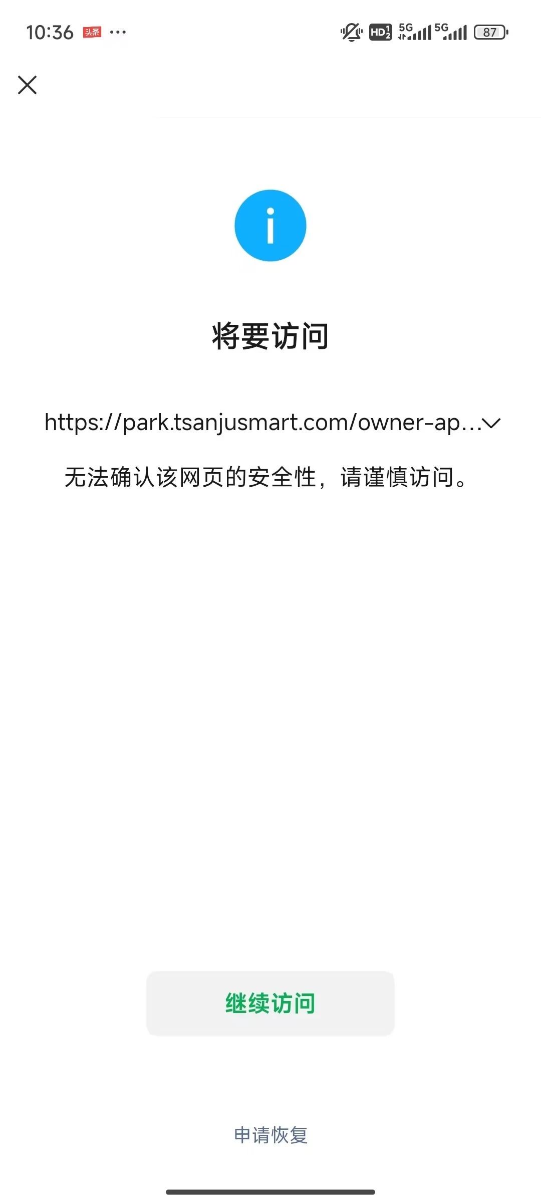 park.tsanjusmart.com,在微信打开出现安全提示,通过浏览器打开正常,域名已备案