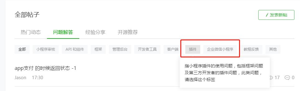 问题增加插件和企业微信小程序tag,方便更好地定位问题。