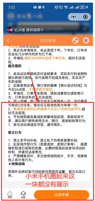 目前发现小米多款手机全屏打开小程序没问题,半屏打开活动报名页面展示不完整,报名须知没有展示出来,底部按钮也没有。点击右上角全屏后刷新小程序重新进入正常