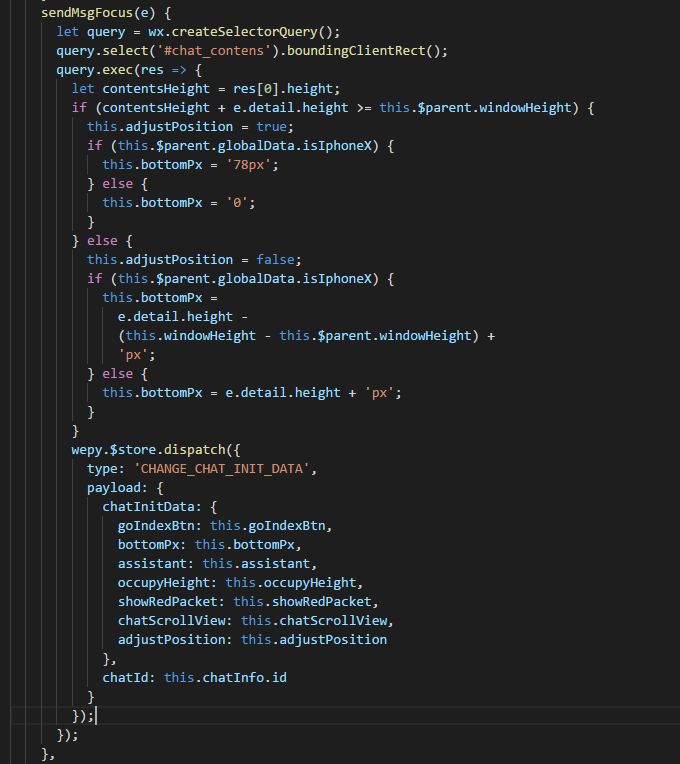 是一个聊天窗口,需求是当内容少时键盘弹起不自动上推页面,内容多时键盘弹起自动上推页面,现在遇到的问题是当input聚焦就执行了键盘弹起事件 设置的adjust-position立马就生效了,这个时候我的逻辑就算走完了,再设置adjust-position也没有用了,附上代码 (聚焦事件)!谢谢官方能提供建议