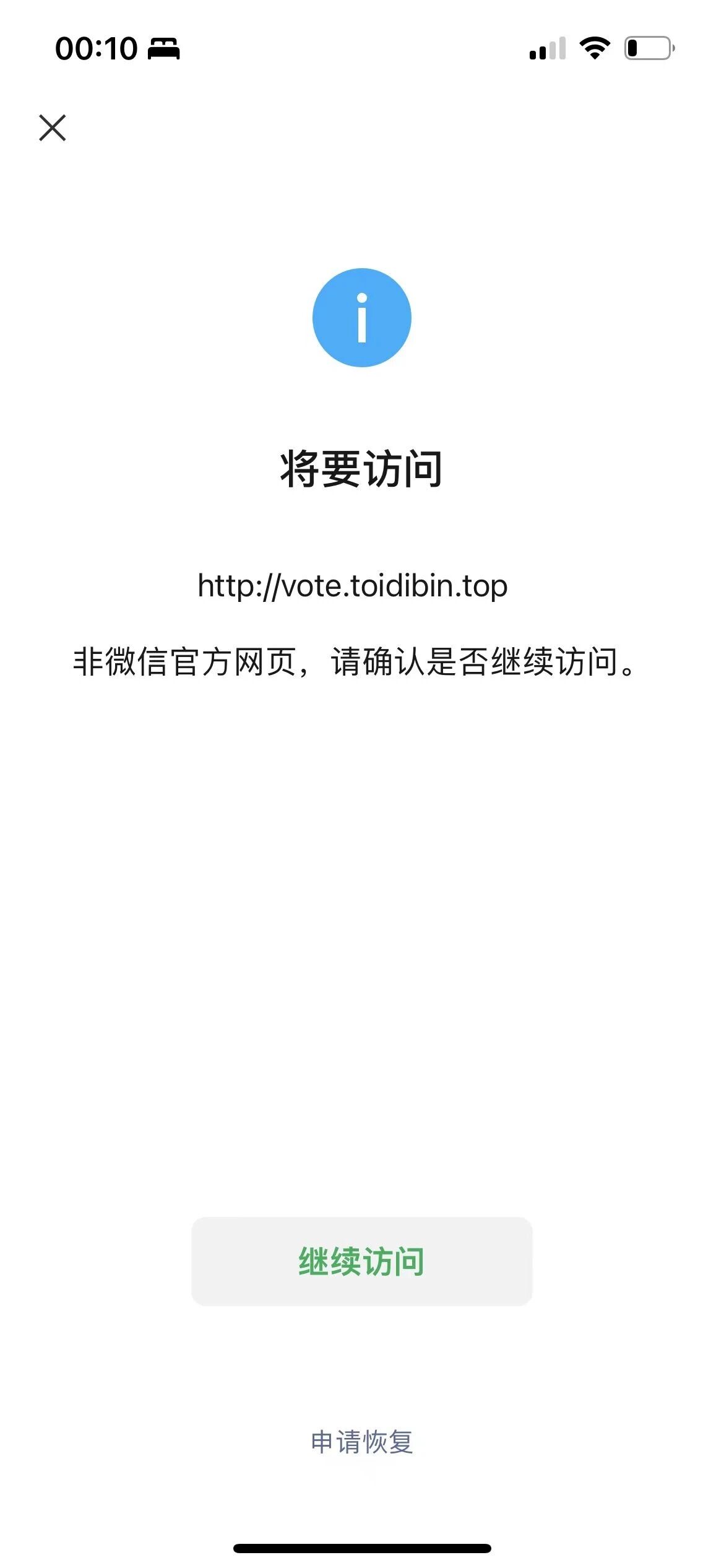 昨天中午上线的一个科普讲解大赛的网络投票,昨天可以正常访问的。今天0点之后开始提示这个。