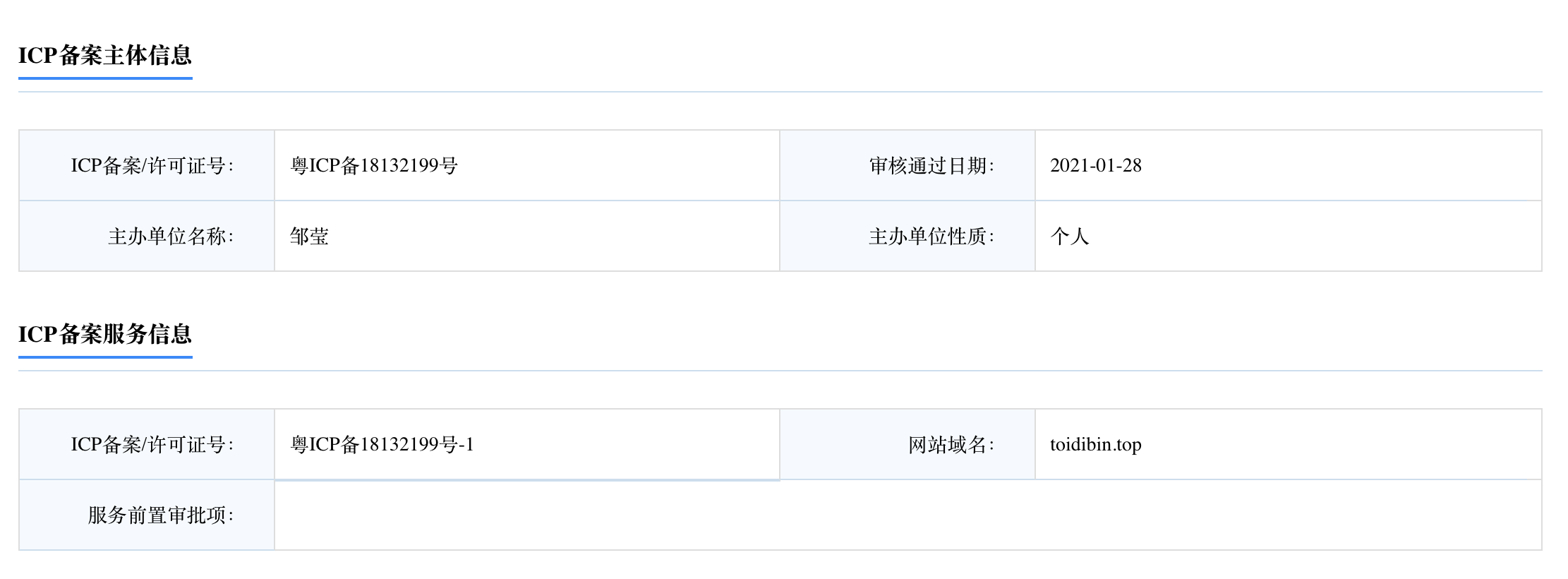 这个域名已经备案,备案信息如下: